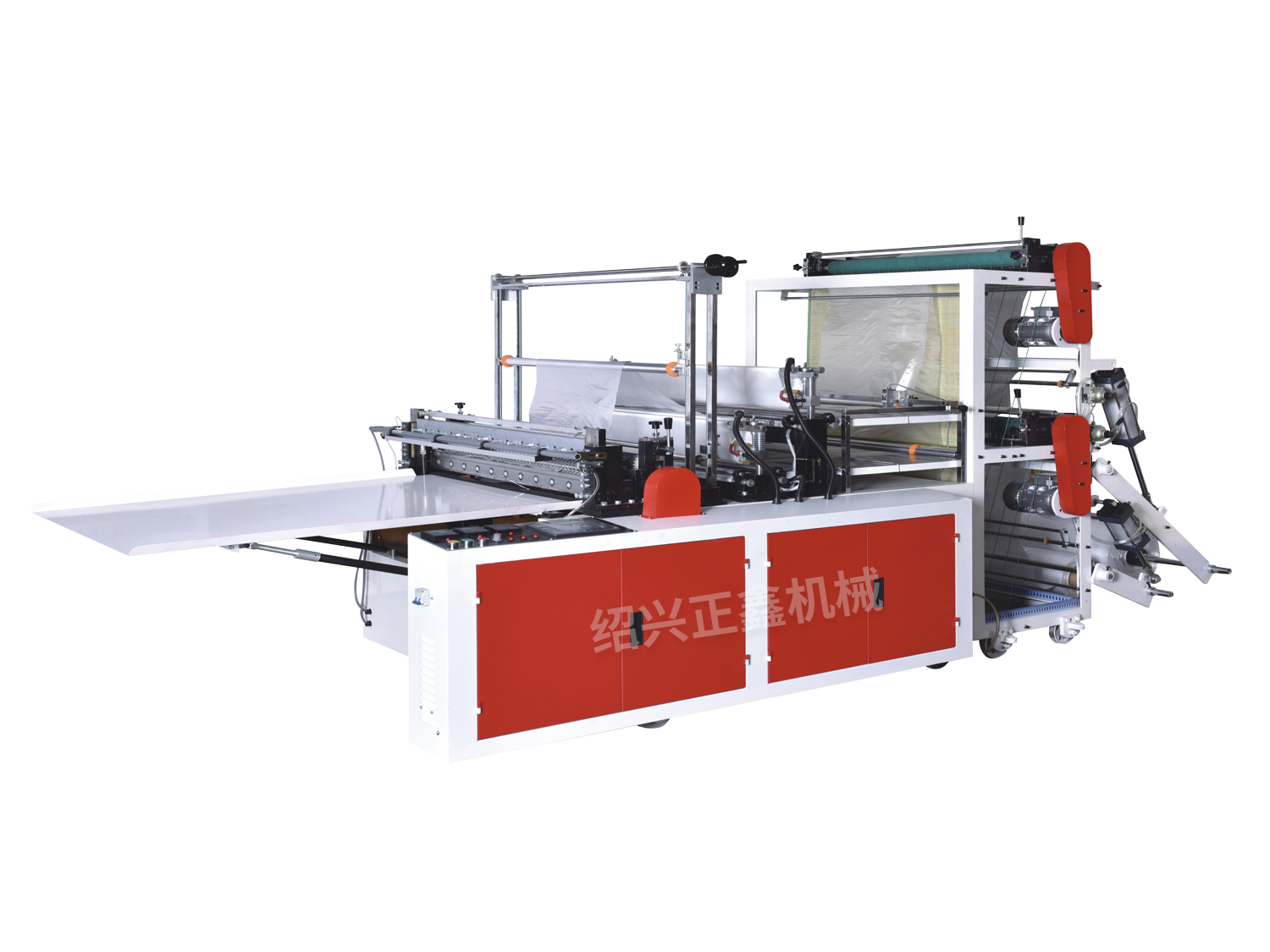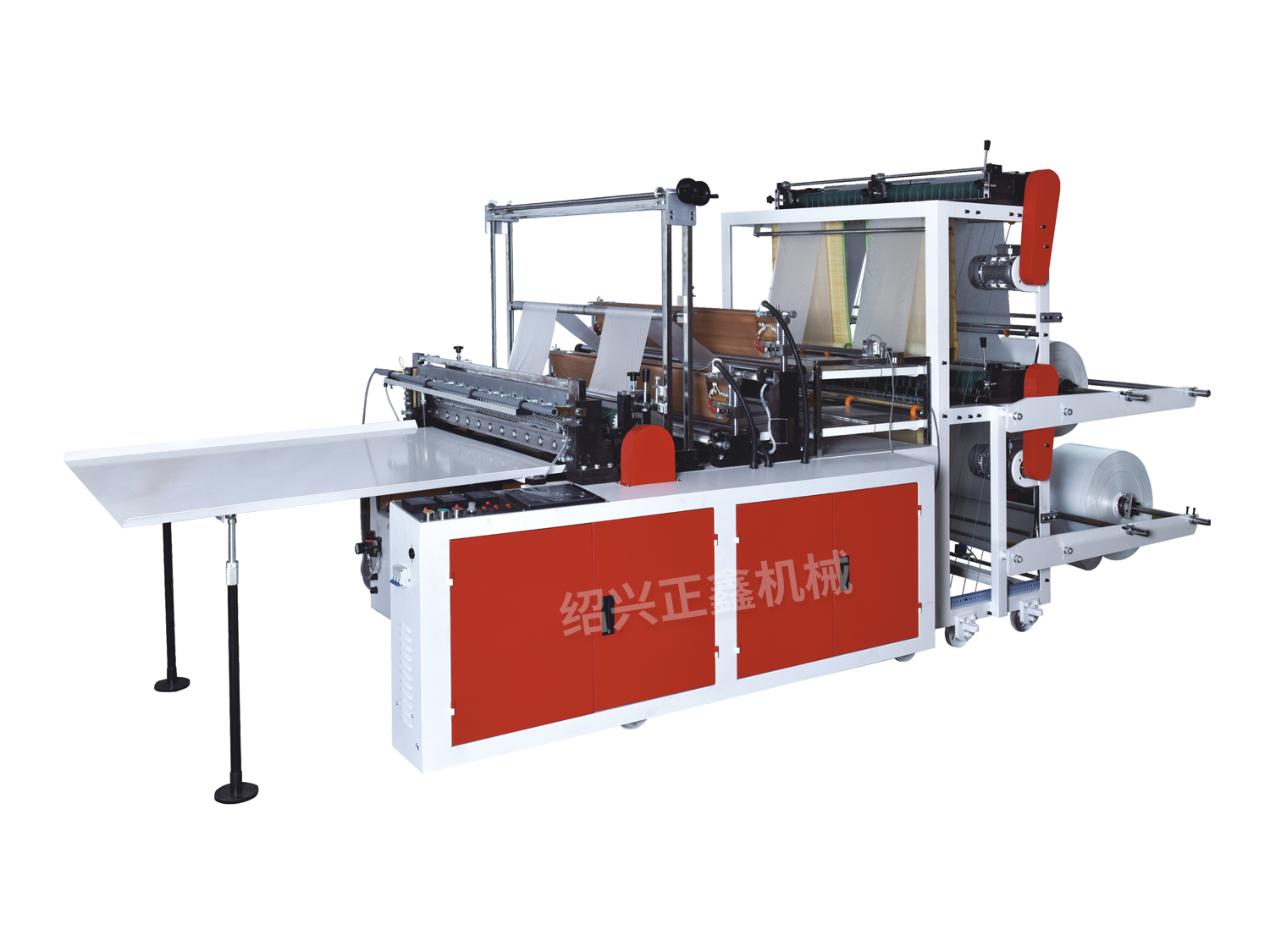 ・该类机型适宜加工筒状HDPE、LDPE等本色或彩色的平口袋及背心袋,适合加工日本垃圾袋。