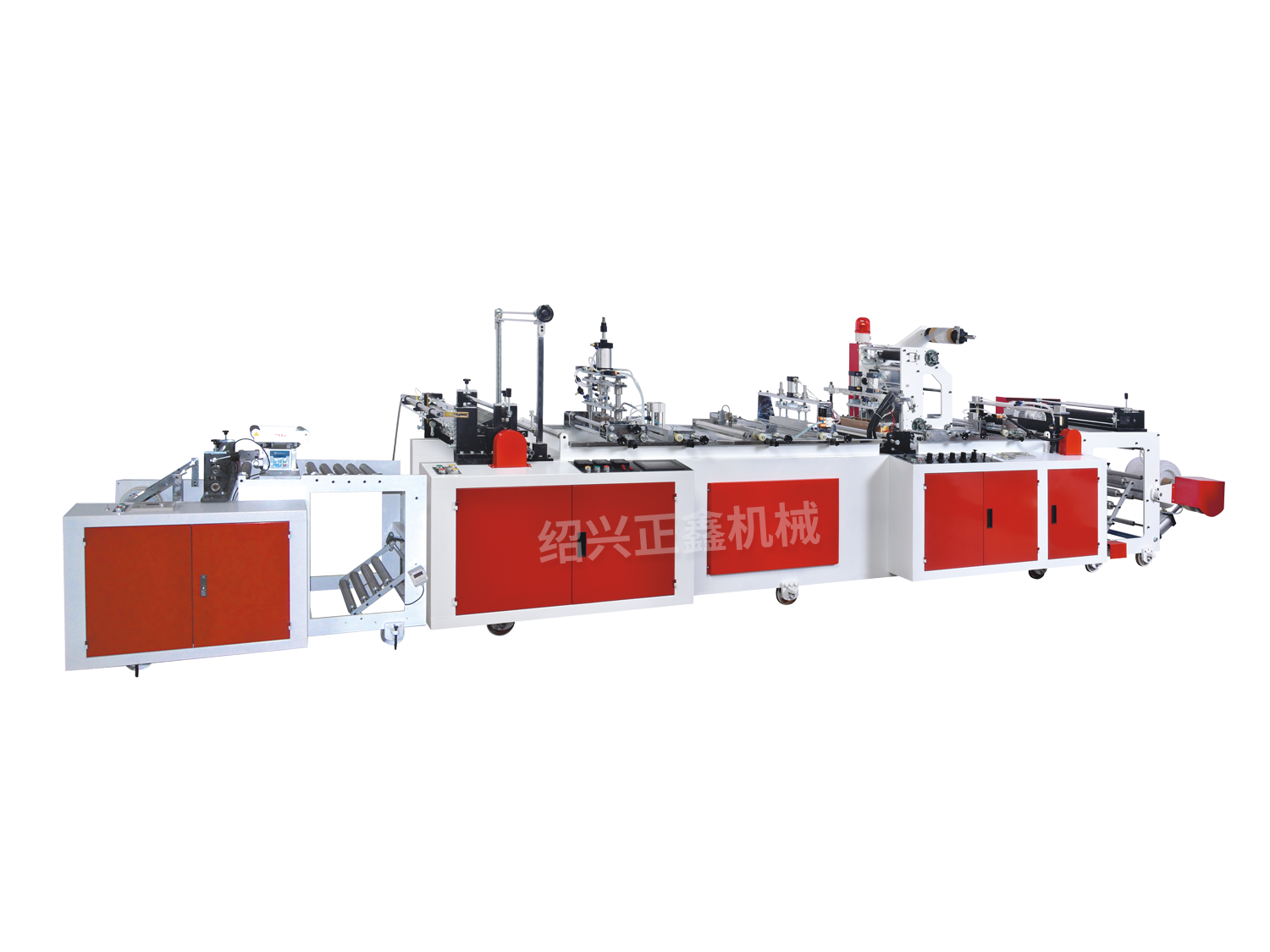 ・该类机型适宜加工高压聚乙烯的筒状本色或彩印塑料薄膜袋,特别适合加工卫生纸袋、尿片袋(可配贴片,打孔,打撕裂线)。